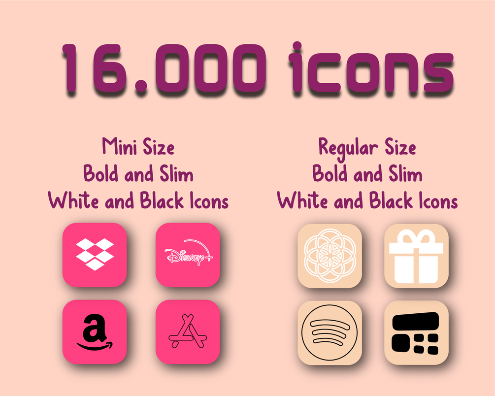 1) 16k app icons, black background color, 8 Neon Color for Icons, Mini Sizes and Slim icons